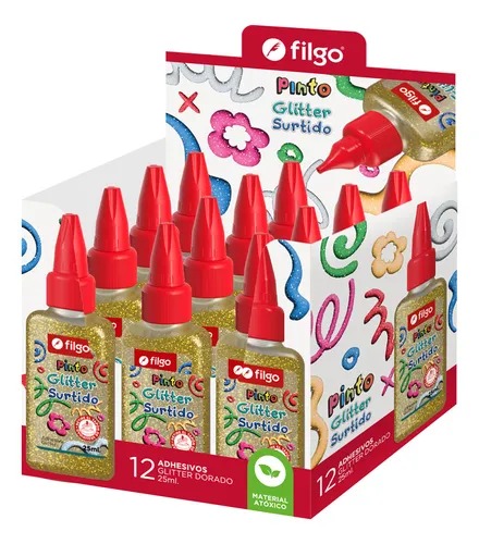 FILGO Adhesivo PINTO GLITTER 25ml / Caja 12 Dorado