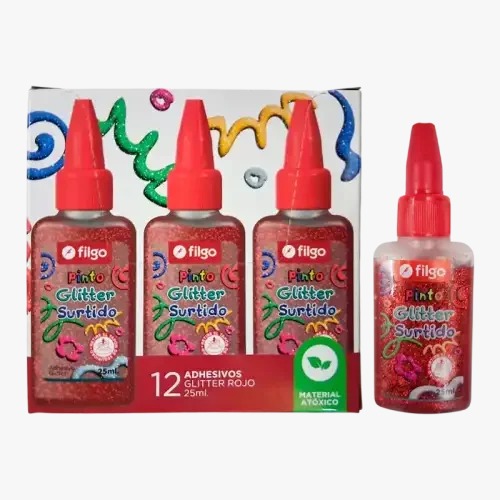 FILGO Adhesivo PINTO GLITTER 25ml / Caja 12 Rojo