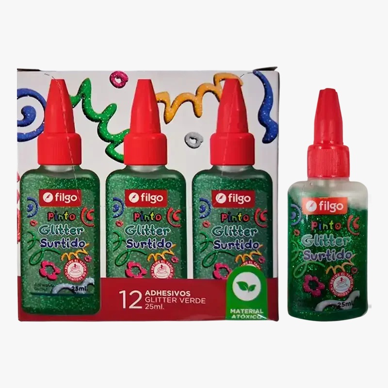 FILGO Adhesivo PINTO GLITTER 25ml / Caja 12 Verde