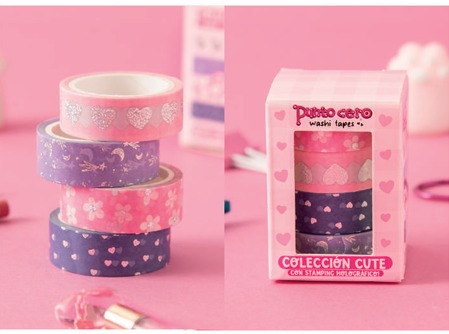 PUNTO CERO WASHI TAPES CON STAMPING CUTE PACK x4