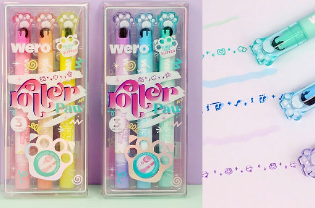 WERO Resaltadores doble punta Glitter mas sellos Paw